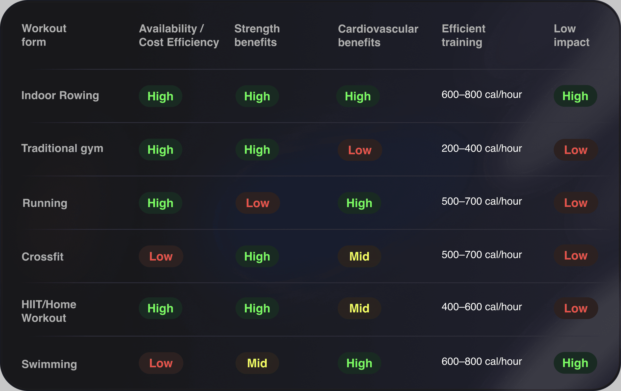 The rowing machine is one of the few workouts that trains both strength and endurance at the same time.